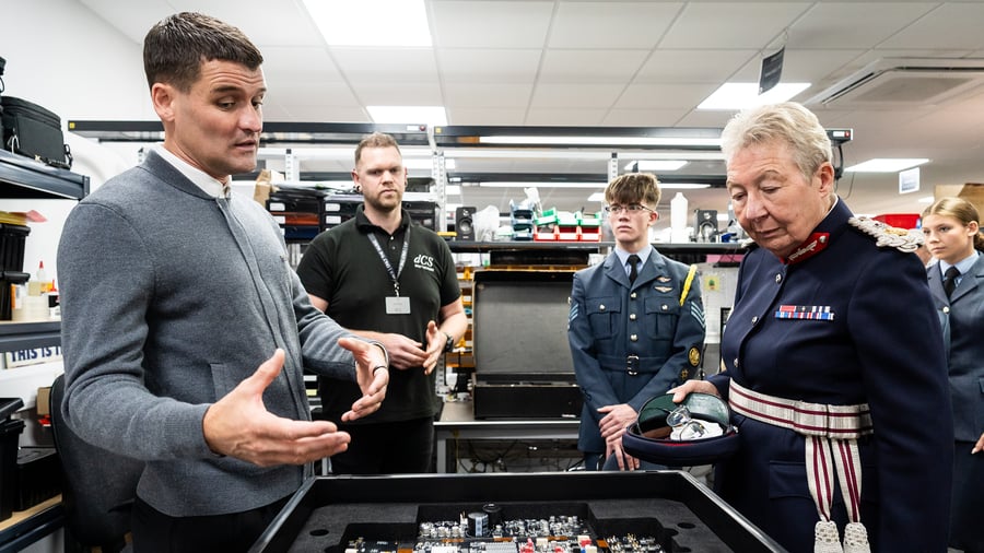 2025年4月に受賞通知が届きました。そして、9月はOBE QPM(英国政府から社会への貢献を認められた人に与えられる栄誉) ジュリースペンス氏(ケンブリッジ州の国王代表者)を筆頭に副総督、総督候補生らがdCS工場を視察しのために本社にお迎えすることになりました。そして、キングズアワード授与という名誉に預かりました。