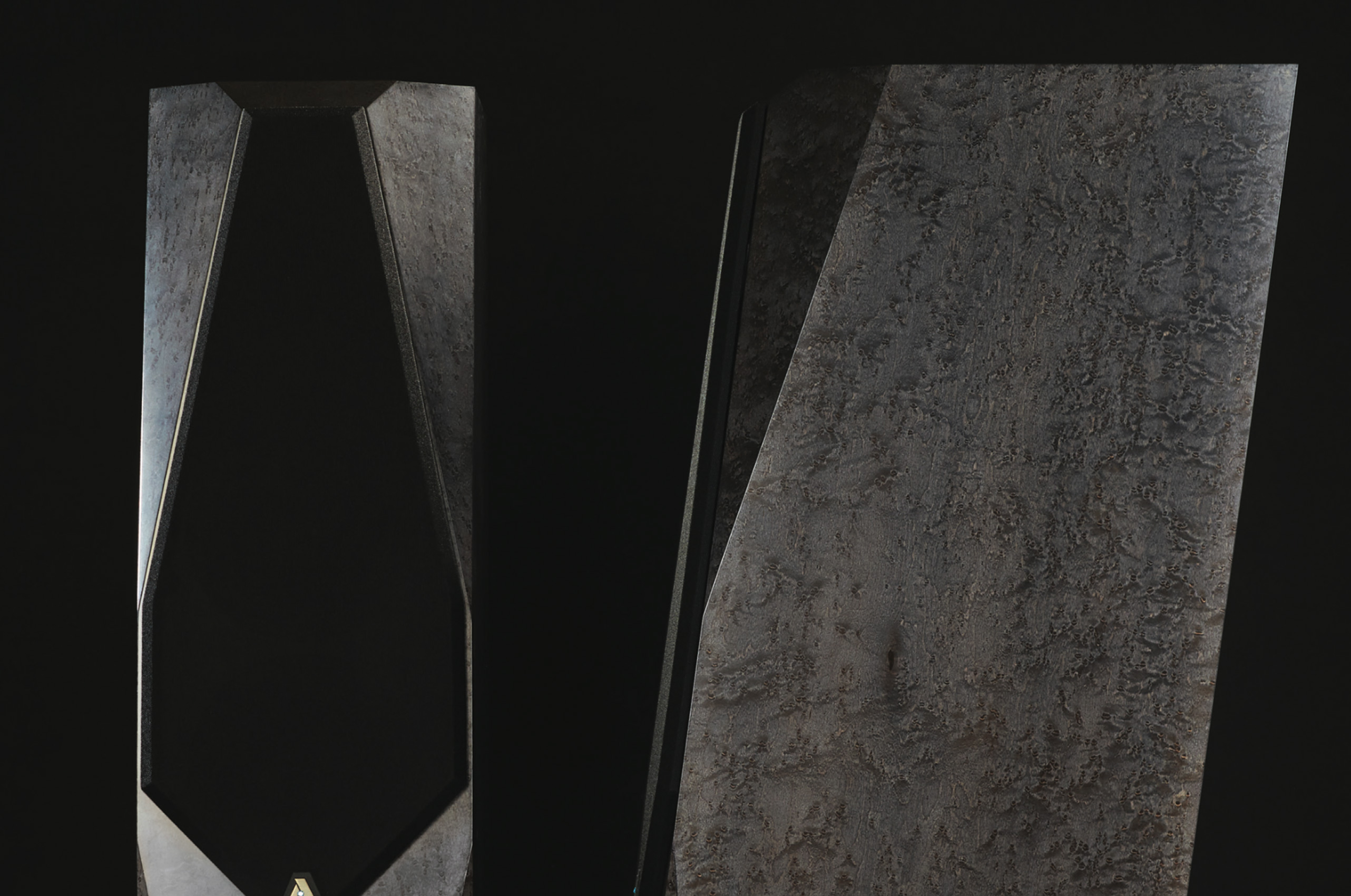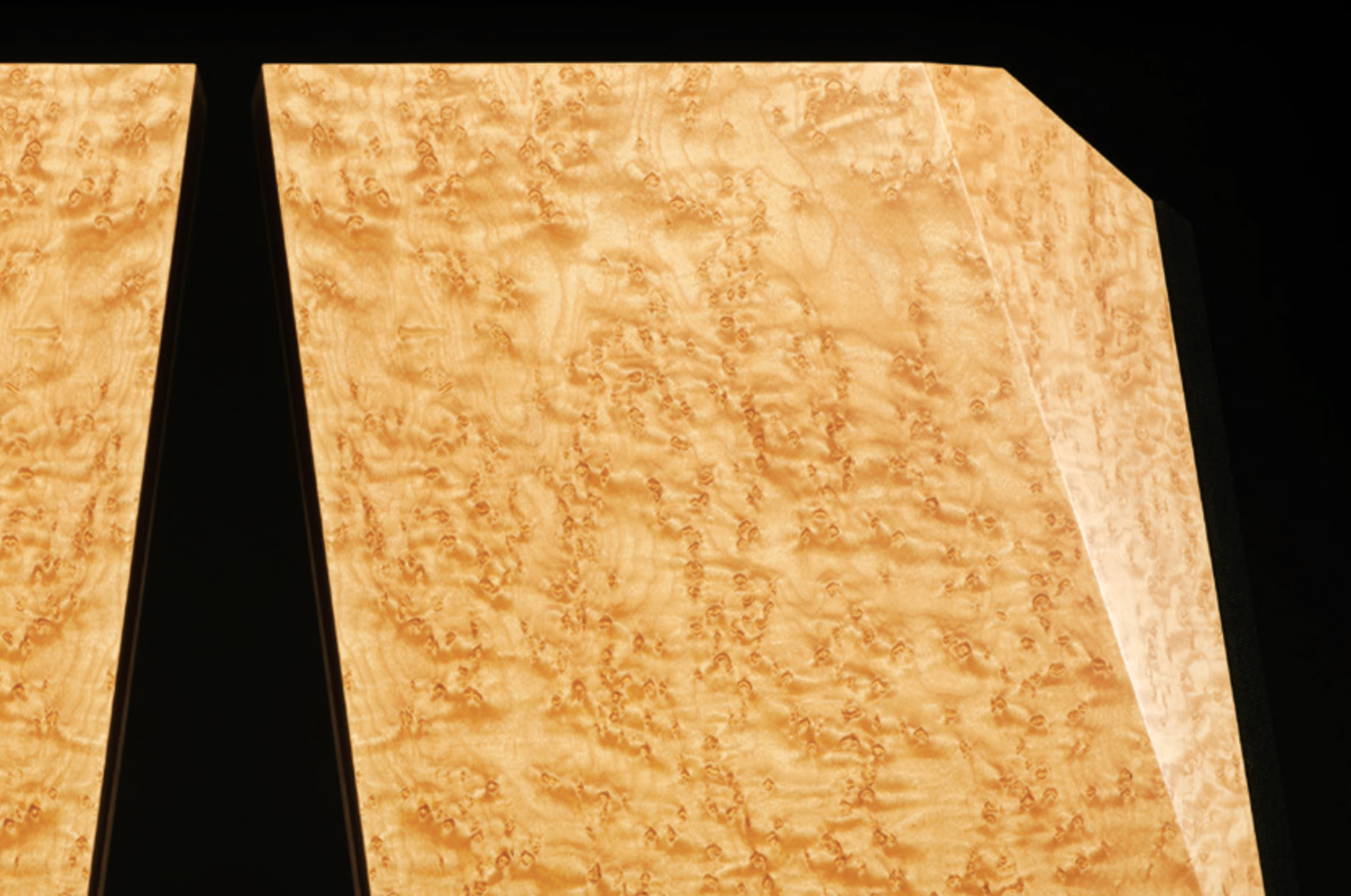 PM1.2のキャビネットは、密閉された個室のようなトゥイーターチェンバーと複数の音響迷路の組み合わせによるユニークな構造となりました。 Avalonには30年を超えるスピーカー造りの経験が蓄積されています。共振を除去する方法に加え、いっぽうで音楽の核心に迫るために共振を有効的に使うノウハウをベースに、新たに開発されたPM1のキャビネットは、多層拘束減衰(※1)を活かした構造をメインバッフルに使用し、固有モードの制御を慎重に調整した空洞共振を構造設計に応用しました。原理的には、1枚では、叩けばカンカンと鳴ってしまう板を、2枚重ねると鳴きはぐんと小さくなります。なぜなら、2枚の板が合わさることでその隙間によって、振動エネルギーを熱エネルギーに変えることで制御されます。単純な例えですが、キャビネットは非常にうまく微調整されたバイオリンやギターのように機能し、音の伝播においては共振を許さず、同時に時間軸位相が整った倍音が加わります。