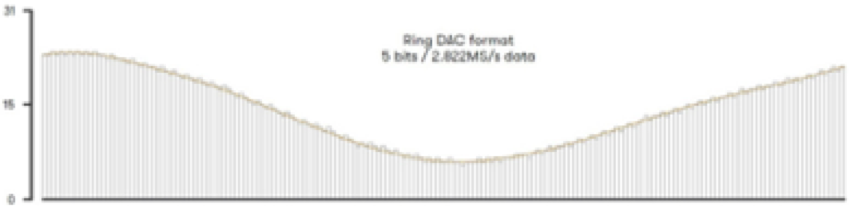 この図は、リングDAC内のモジュレーターの出力を示しており、入力されたデジタル・オーディオ信号を5ビットのハイレート・フォーマットに変調し、アナログに変換する準備が整っています。